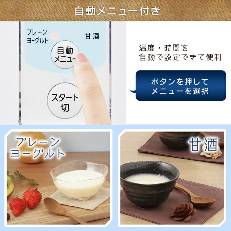 【自動メニュー搭載】 プレーンヨーグルト、甘酒ならボタン一つで、調理開始。